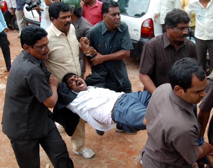 Police take Lawyers and students in custody as they protest at the state High Court on Friday, demanding 42 per cent reservations for Telanganaites in Judiciary posts. Police blocked major roads leading to High Court with barricades and barbed wire fence to prevent agitators entering court premises. INN Photos