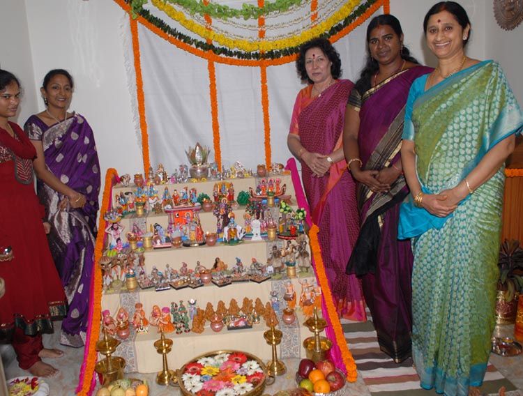 Smt. Vimala Narsimhan, (First Lady of AP) Lady Governor, Ministers Smt.Geetha Reddy and Smt. Sabitha Indra Reddy, Smt.Sunitha Raghuveera Reddy and Smt. Lakshmi Mukhesh Goud participated in 'Bommala Koluvu' arranged at H.W.Mayor's residence today, as part of Deepavali Celebrations.