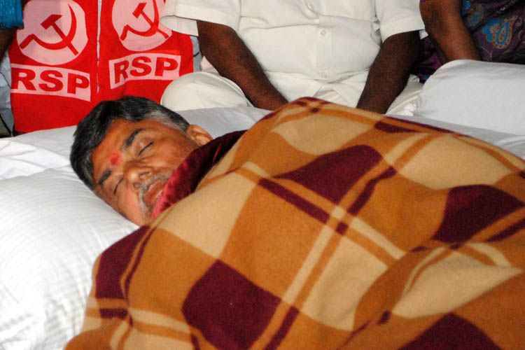 TDP chief Chandrababu Naidu along with a few MLA's, party leaders launched the indefinite hunger strike on Friday morning at the new MLA quarters at Adarsh Nagar after paying homage to TDP founder-president N T Rama Rao at the NTR Ghat, Mahatma Gandhi's statue at the Assembly and B R Ambedkar at Tank Bund.