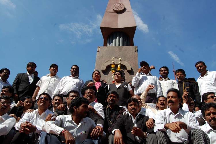 Advocates from Telangana stage a rally on the occasion of the first anniversary of Union Home Minister P Chidambaram's announcement on the formation of a separate Telangana state, at the Martyrs Memorial at Gun Park on Thursday. INN Photo