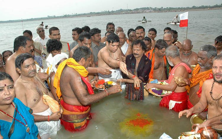 Civil Supplies Minister D. Sridhar Babu formally inagurated the Pranahita Pushkaralu by taking a holy bath in the river and performing a special ritual at Kaleshwaram near Karimangar on Monday.