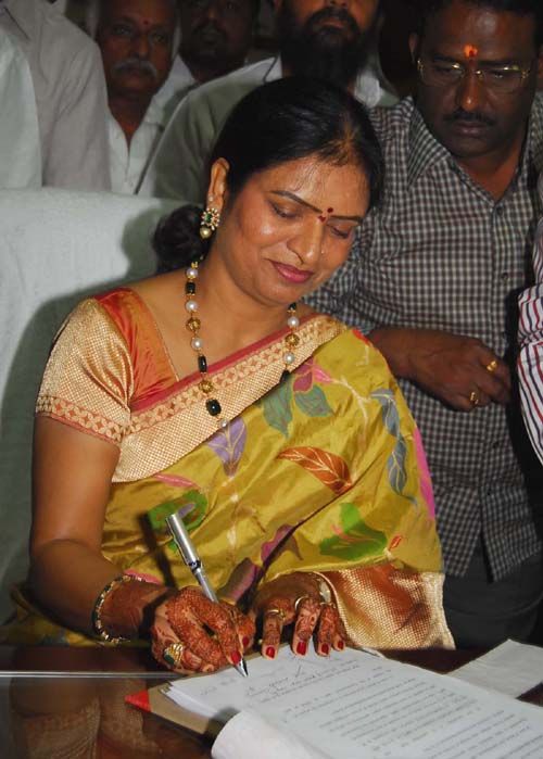 D.K.Aruna, Minister for Information and Public Relations and Cinematography has occupied her chambers after performing puja on Friday. She was greeted by Sri.C.Parthasarathi, IAS, Commissioner, I&PR Department in her Chambers in Secretariat. Top officials of I&PR department joined their Commissioner Parthasarathi in greeting the new minister.