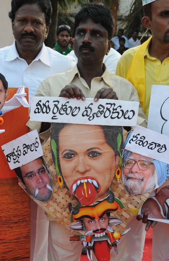 National leaders like Prakash Karat, Deve Gowda, Ajit Singh, Chautala joined TDP president N.Chandra Babu Naidu in flaying the anti farmer policies of both sate and central governments at ‘Rytu Kosam' public meeting organised by TDP at Brahmananda Reddy stadium in Guntur on December 30.