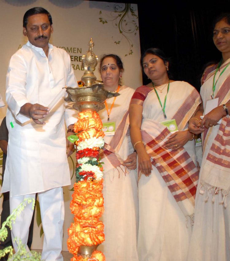 Chief Minister N Kiran Kumar Reddy lights a lamp to mark the inauguration of the All India Women Lawyers Conference at Global Peace Auditorium Shanti Sarovar, Brahma Kumaris, Gachchiibowli in Hyderabad on Saturday. INN Photos