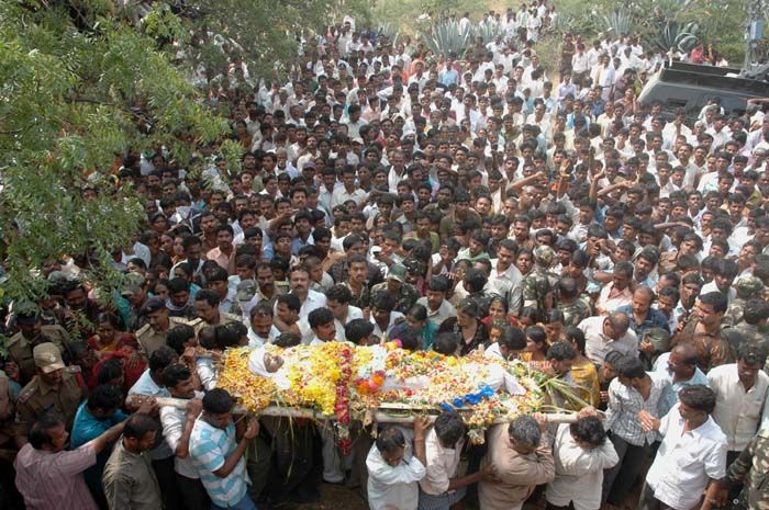 Thousands bid farewell to the slain faction leader Gangula (Maddilacheruvu) Suryanarayana Reddy before his last rites performed at Maddilacheruvu village in Anantapur district on Wednesday.