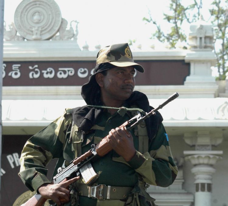 Under the shadow of gun: As Justice Srikrishna Commission report is about to made public tomorrow, central para military forces have been deployed at major politcal and commercial centers in Hyderabad as well as in Telangana districts.