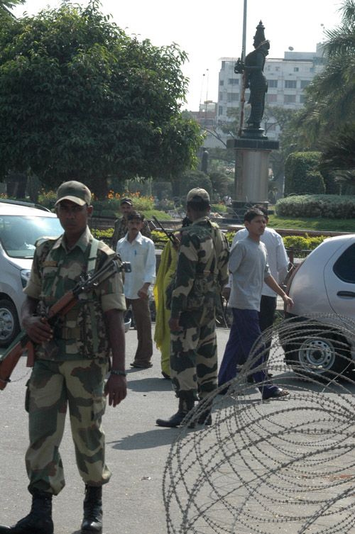 Under the shadow of gun: As Justice Srikrishna Commission report is about to made public tomorrow, central para military forces have been deployed at major politcal and commercial centers in Hyderabad as well as in Telangana districts.