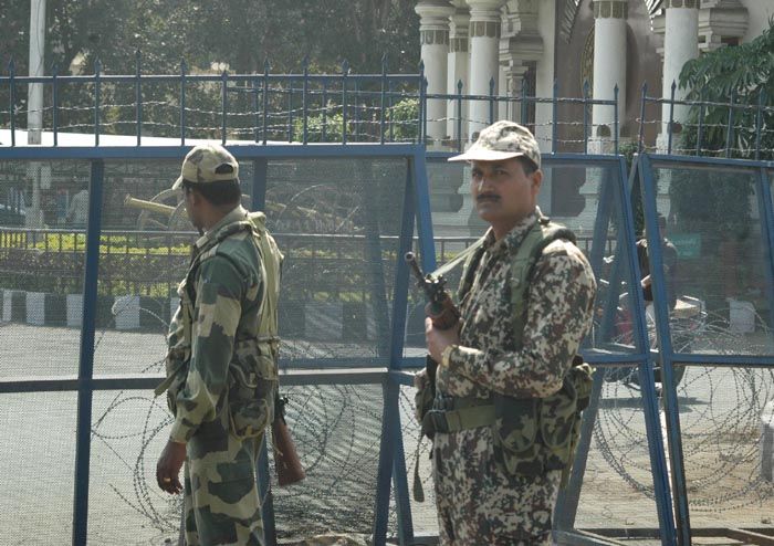 Under the shadow of gun: As Justice Srikrishna Commission report is about to made public tomorrow, central para military forces have been deployed at major politcal and commercial centers in Hyderabad as well as in Telangana districts.