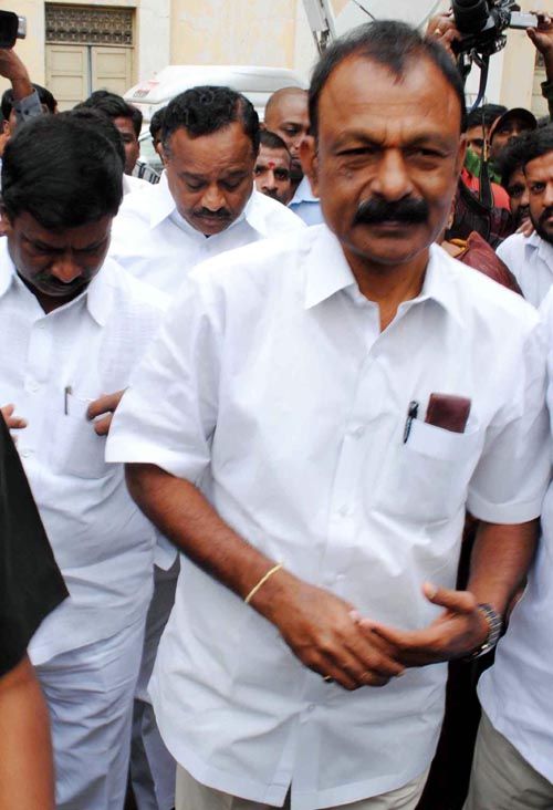 Revenue Minister N. Raghuveera Reddy visiting Osmania General Hospital to pay his last respect to the slain faction leader Maddelacheruvu Suryanarayana Reddy alias Suri on Tuesday.