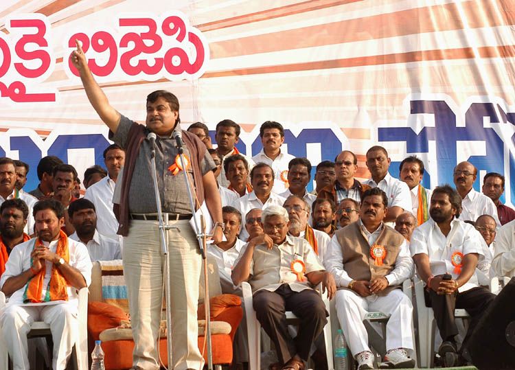 BJP national president Nitin Gadkari on Tuesday addressing a massive gathering at Telangana Sankharavam held at Adilabad district headquarters. He said BJP would extend full support to Telangana Bill if it was introduced by Centre in Parliament.