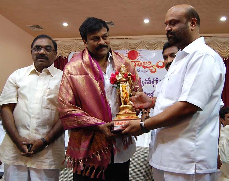 Praja Rajyam Party president K Chiranjeevi addresses party members at a State Committee and Party General Body, Joint State-Level meeting held at Vasanth Vihar Kalyanamantapam, Nagole, LB Nagar in Hyderabad on Monday. INN Photos