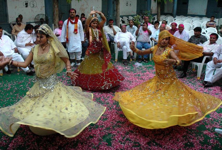 Dancers from Rajasthan perform at a Holi Milan function organised by the Agarwal Samithi at Agarwal High School in Gulzar Houz in Hyderabad on Saturday. INN Photos
