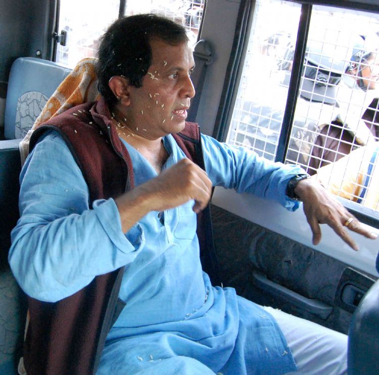 In a major show of strength, thousands of people violated ban orders and removed police barricades to assemble at Tank Bund area here on Thursday as part of the 'million march' for a separate Telangana state. The peaceful protest during the day was marred by incidents of violence in the evening. Protesters damaged some statues of Telugu leaders on Tank Bund, set afire a police vehicle and attacked a vehicle and crew of a television channel. -INN Photos