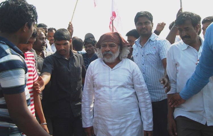 In a major show of strength, thousands of people violated ban orders and removed police barricades to assemble at Tank Bund area here on Thursday as part of the 'million march' for a separate Telangana state. The peaceful protest during the day was marred by incidents of violence in the evening. Protesters damaged some statues of Telugu leaders on Tank Bund, set afire a police vehicle and attacked a vehicle and crew of a television channel. -INN Photos
