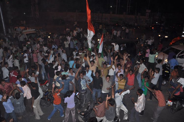 Hyderabad city erupts in joy. Scenes of dancing and singing and bursting of firecrackers witnessed all over the city. As the last wicket fell, fans burst firecrackers and came out on the roads dancing and singing. The policemen, who were out on the roads in good numbers, did not seem to mind the celebrations. Boisterous rallies were taken out on important thoroughfares such as Tank Bund, Necklace Road, Punjagutta-Begumpet main road, KBR Park main road, Musheerabad, Dilsukhnagar, Banjara Hills, and Jubilee Hills.