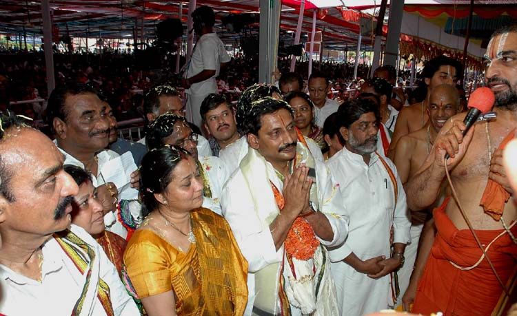 Chief Minister N Kiran Kumar Reddy participated in the celestial wedding of Lord Srirama with Goddess Sita Devi being held at Midhila Stadium in Bhadrachalam and presented silk clothes and 'Mutyala Talambralu' on behalf of the State government on the occasion of Srirama Navami on Tuesday.