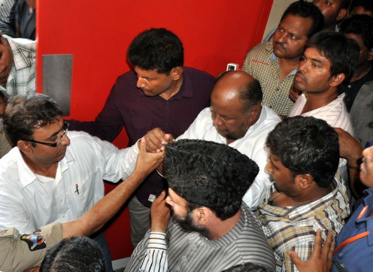 Police arrest Mohammed Pahelwan, the prime accused in the attack on the life of MIM MLA Akbaruddin Owaisi at Yashoda Hospital at Malakpet in Hyderabad on Saturday. Majlis Bachao leaders Amjedullah Khan Khalid, Farhat Khan and others are also seen. INN Photos