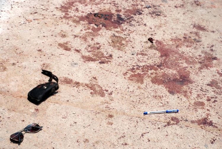 CLUES team look for evidence at the scene of the attack on the life of MIM Floor Leader in the state Assembly Akbaruddin Owaisi at Chandrayngutta in Hyderabad on Saturday. INN Photos