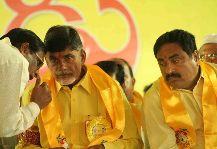 Telugu Desam Party president N Chandrababu Naidu is all ears to a leader at the party’s annual conclave ‘Mahanadu’ at Gandipet in Hyderabad on Friday.