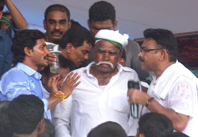 Kadapa MP YS Jaganmohan Reddy ends his 48-hour Rythu Deeksha by taking lime juice offered by a farmer, Venkata Subbaiah of Sattenappalli at the YSR Rythu Pranganam in Guntur on Tuesday. INN Photos