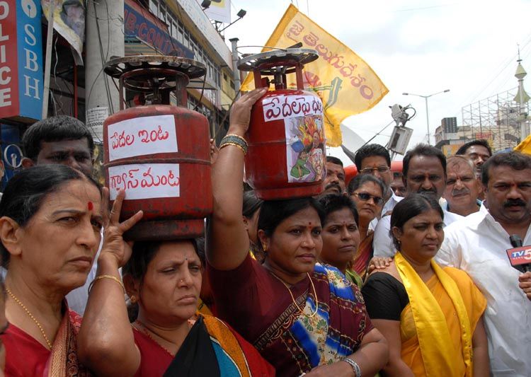 Telugu Desam women activists protest against price hike on Kerosene, LPG & Diesel at RTC 'X' Roads, Hyderabad on Saturday- INN Photos