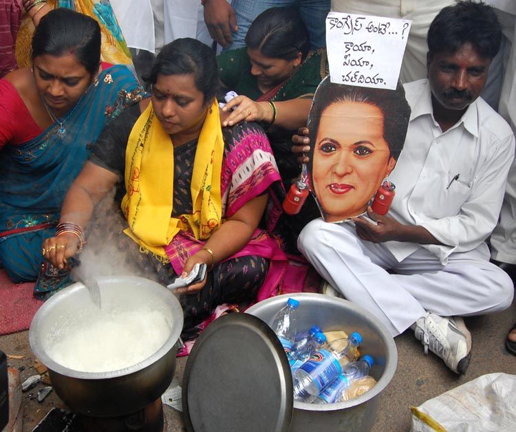 TDP leaders staging a protest in front of the R R District Collectrate against the hike of the diesel, LPG and Kerosene prices at Lakdi Ka Pool in Hyderabad on Monday. INN Photos