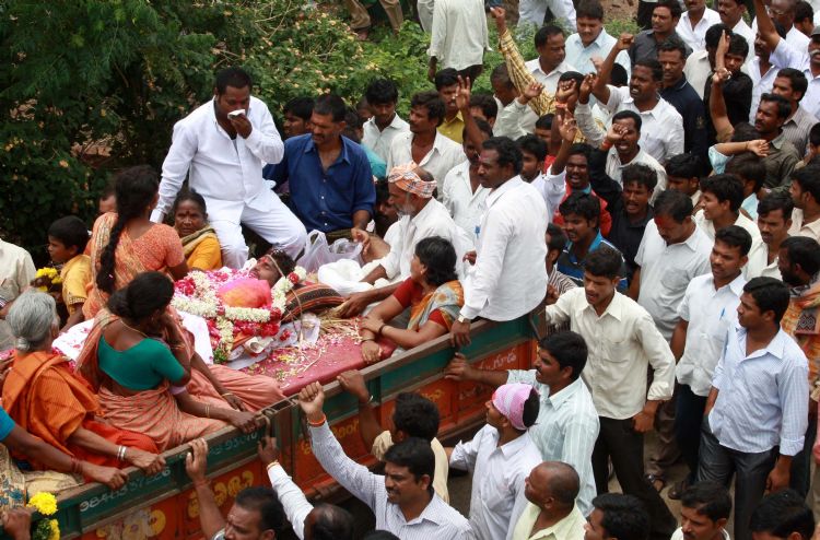 The mortal remains of Yadireddy, who committed suicide for the cause of Telangana state, were consigned to flames in the presence of thousand of separate Telangana statehood demand supporters at Pedamangalaram village in Moinabad, Rangareddy district on Friday.