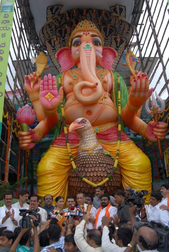 Thousand of devotees thronged at the state’s most popular Ganesh venue, Khairatabad Ganesh to witness the first prayers to their beloved deity on he first day of the festival here on Thursday morning. Governor ESL Narashimhan, along with his wife Vimala Narashimhan, participated in the prathisthapana programme and performed the first special pooja to the deity.