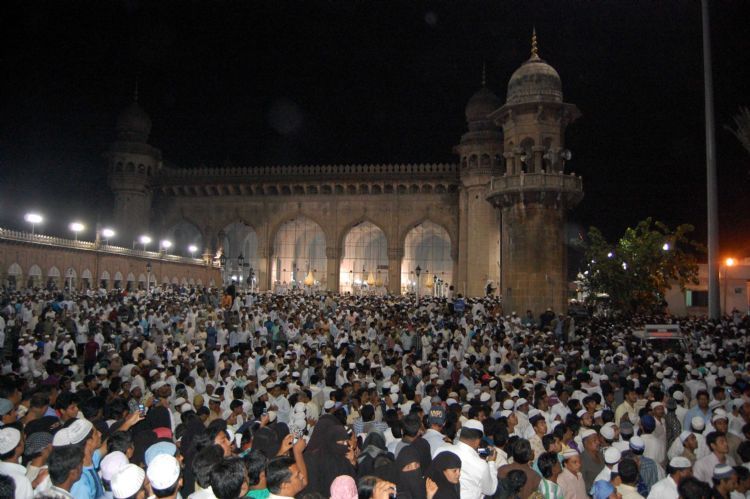 Hundreds of people gather for Mohammed Azharuddin's son Mohammed Ayazuddin's Namaaz-e-Janaza (last prayers) at Mecca Masjid in Hyderabad on Friday - INN Photos