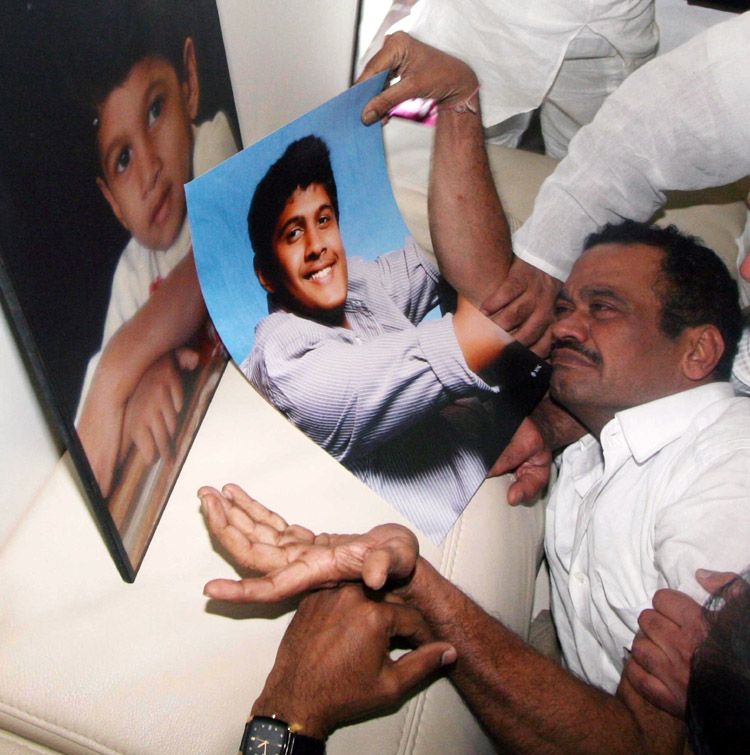 Komatireddy Venkat Reddy, who was in a state of shock with tragic demise of his son Prateek Reddy in a road accident, weeping inconsolably before performing last rites to his dear son on Wednesday in Hyderabad.
