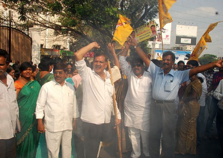 TDP leaders celebrate with sweets at NTR Trust Bhavan here after High Court verdict dismissing the plea of YSR Congress MLA YS Vijayamma's to order probe into the illegal assets of TDP president N.Chandrababu Naidu on Thursday.