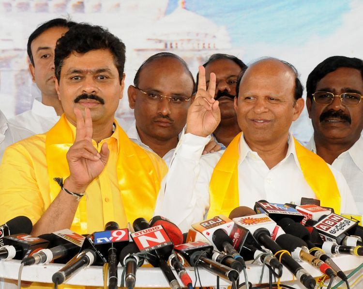 TDP Rajya Sabha nominees CM Ramesh and Devendar Gowd speaking to media persons in the Assembly premisis after filing their nominations for RS elections on Monday.