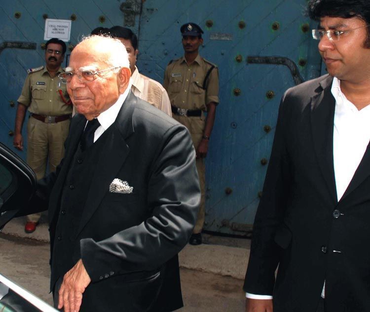 Senior advocate Ram Jethmalani comes out of Chanchalguda jail after meeting YSR Congress party president Jagan Mohan Reddy here on Thursday - INN Photos