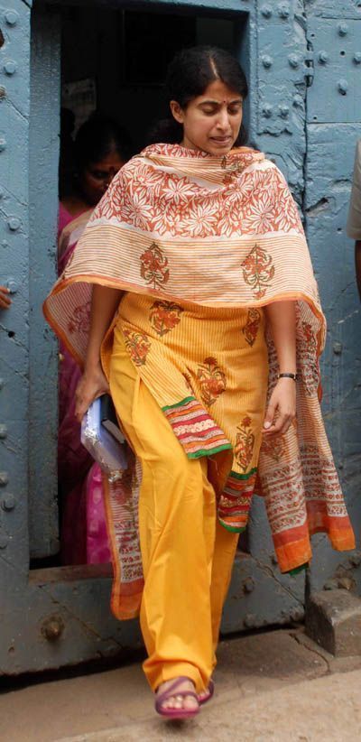 YS Jaganmohan Reddy's mother Vijayamma and wife Bharati coming out of Chanchalguda jail after meeting him here on Tuesday - INN Photos