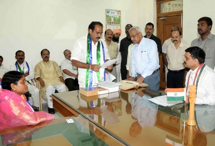 YSR Congress party Ongole MLA Balineni Srinivasa Reddy take oath of office at Speaker Nadendla Manohar chamber here on Friday - INN Photos