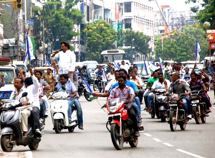YSR Congress Party activists taking out a bike rally at Abids in support of party's bandh call here on Friday - INN Photos