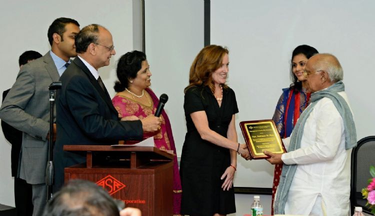 Rajarajeswari and Subba Rao Anumolu of ASR International Corporation, Hauppauge, NY ( www.asrintl.com ) honor the Telugu Cinema Legend, Dr. Akkineni Nageswara Rao and local dignitaries in Hauppauge, New York. Photocredit: Anand Chikine