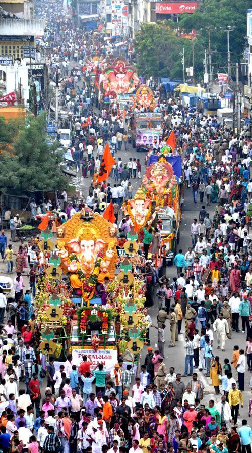 Thousands of devotees participate in the annual Ganesh procession in the city on Saturday - INNPhotos