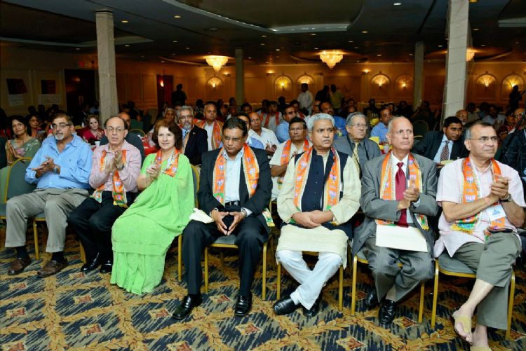 Overseas Friends of BJP's Nationcal Council Meeting was held in North Brunswick, NJ from September 14th to 16th. Attendees include Shri Ram Lal Gupta, National General Secretary (Org), BJP, Shri Vijay Jolly, Overseas Convener of the foreign affairs cell, BJP and Gajendra Solanki, Co-convenor, Cultural Cell, BJP. Photocredit: Shivakumar Chikine