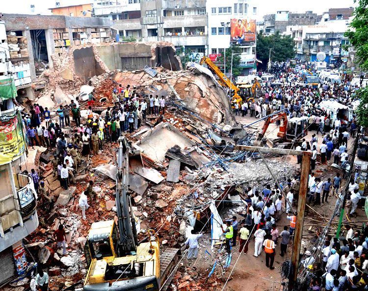 12 people were killed and many injured after an 80-year-old building collapsed in Secunderabad Monday. The 3-storey building of the Iranian City Light hotel collapsed at around 6:30 am. Rescue teams managed to pull out 10 people from the rubble and shift them to Gandhi Hospital.