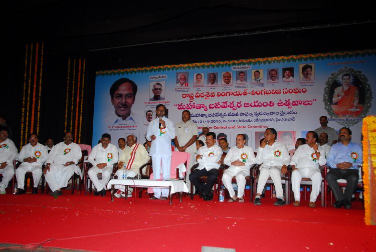Telangana CM K.Chandrasekhar Rao speaking in Mahatma Basaveswara Jayanthi Celebrations held at Ravindrabharathi in Hyderabad on April 21, 2015.
