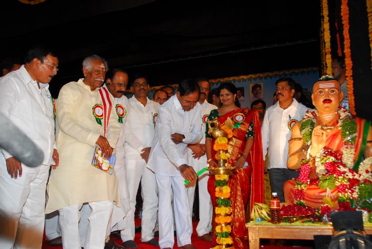 Telangana CM K.Chandrasekhar Rao inaugurating Mahatma Basaveswara Jayanthi Celebrations in Ravindrabharathi in Hyderabad on April 21, 2015.