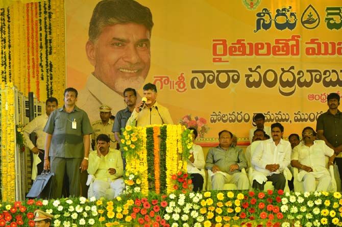 Chief Minister Andhra Pradesh N. Chandrababu Naidu public meeting at Polavaram village in Prakasam District on April 25, 2015.
