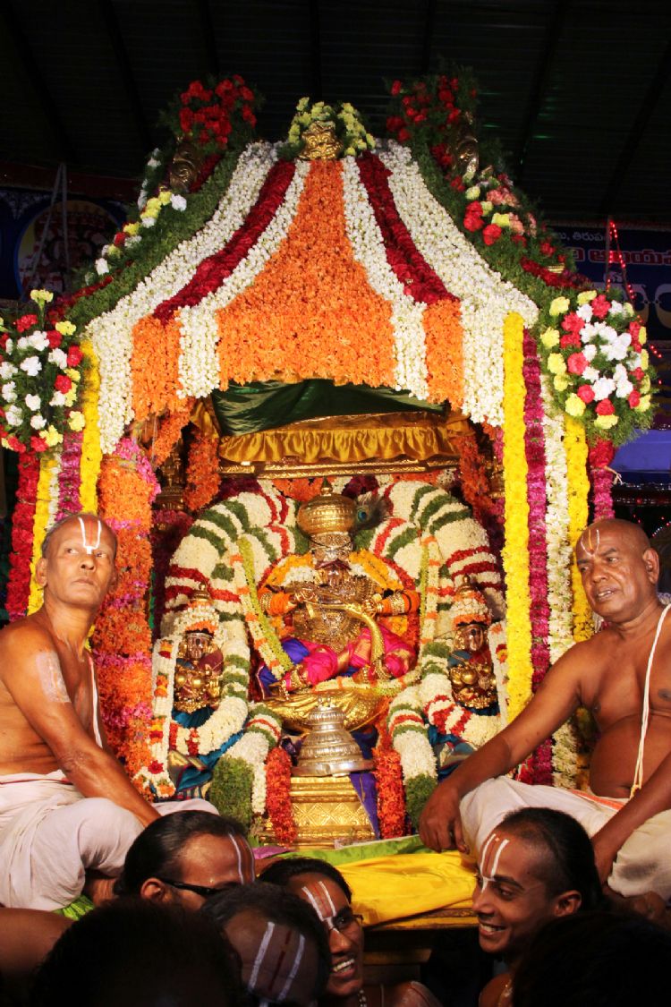 Processional deities of Lord Govindaraja Swamy along with His consorts Sridevi and Bhudevi were taken out in a grand procession atop Sarvabhoopala Vahanam as part of fourth day ongoing nine day Annual Brahmotsavam in Sri Govindaraja Swamy Temple, Tirupati.