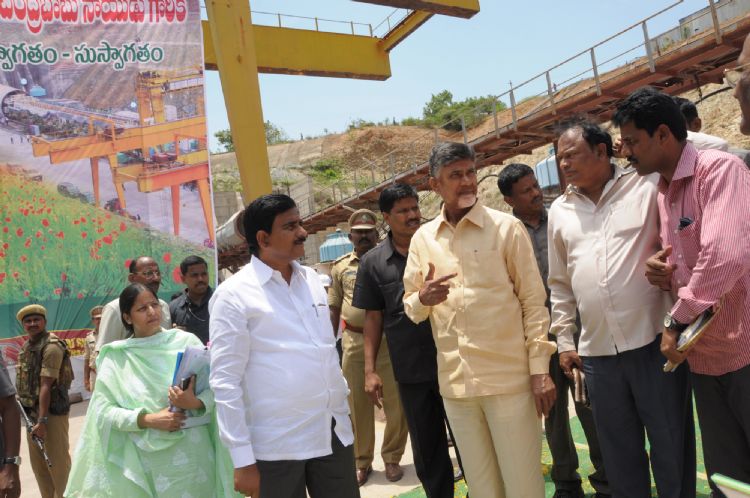 Chief Minister N.Chandrababu Naidu inspected 1st tunnel works of Velugonda Project in Dornala Mandal of Prakasam District on May 14, 2015.