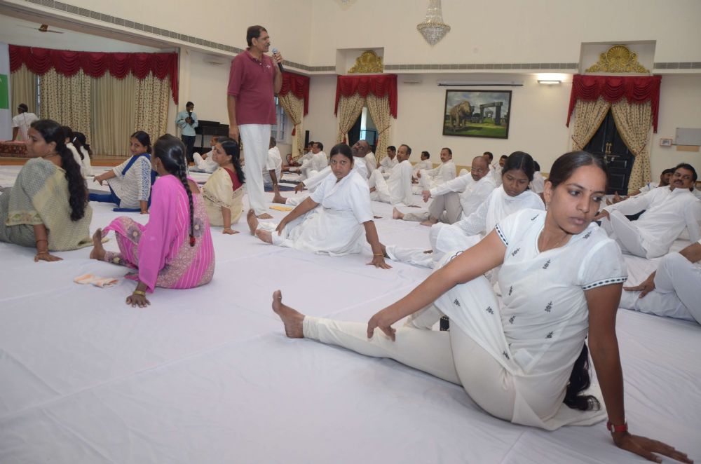 Governor of Telangana and Andhra Pradesh E.S.L. Narasimhan taking the lead in organising the first International Yoga Day celebrations at Raj Bhavan in Hyderabad on Sunday.
