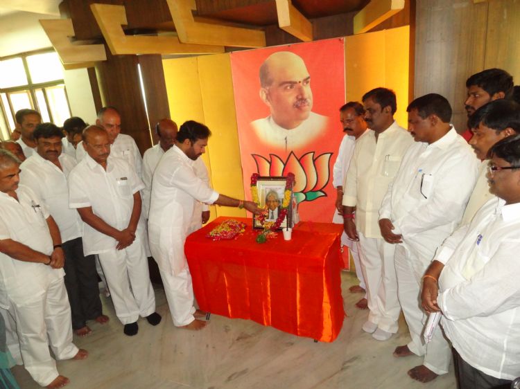 Telangana BJP State President, MLA Kishan Reddy paying homage to former president Dr. APJ Abdul Kalam at party office in Hyderabad on Tuesday.