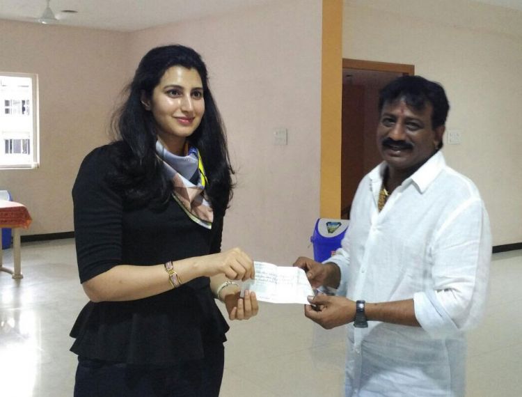 Sai Korrapati Varahi Chalana Chitram Owner donated Rs 24,56,789 cheque given to Smt Nara Brahmini for AP State New Capital Development fund.