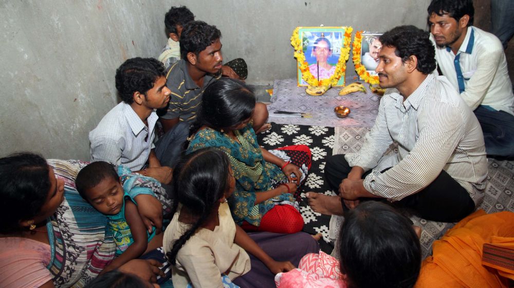 YSRCP Chief YS Jagan interacting with the banana farmers and consoling family members of road accident in Surampalem of East Godavari District on July 4th, 2015.