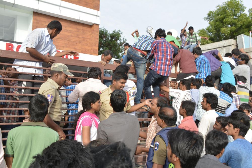 The much awaited film Baahubali released today and as expected the film is getting huge response from audience. Due to heavy rush stempede at Chintalakunta Vijalakshmi talkes, Hyderabad.